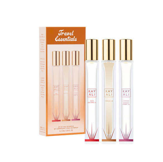 A deliciously decadent set that contains 3 x 10ml Kayali travel spray fragrances, perfect for your holidays, handbags and so much more!